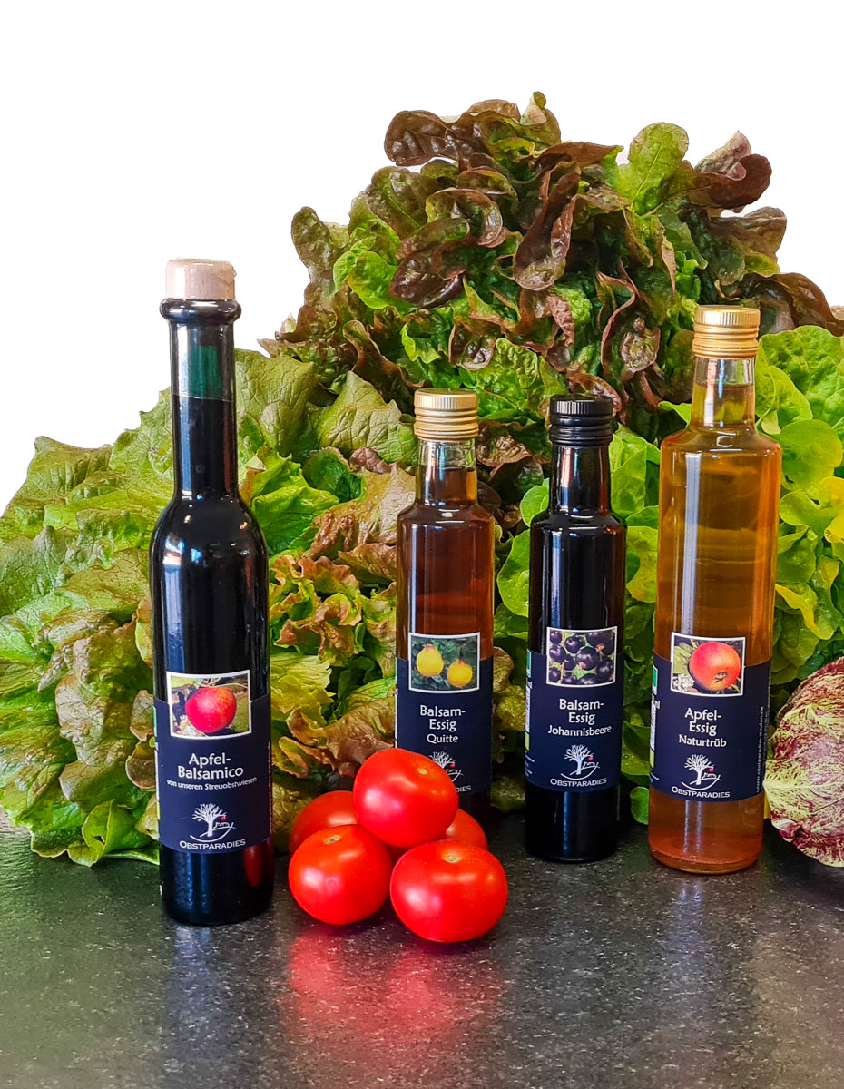 Unsere Balsamessige sind die ideale Zutat für fruchtige Dressings, Saucen und Marinaden. Aber auch als ungewöhnlicher Aperitif machen sie etwas her. Hauptspeisen und Desserts können neu interpretiert werden. Alle unsere Balsamessige werden selbstverständlich ohne Farb- und Konservierungsstoffe hergestellt.